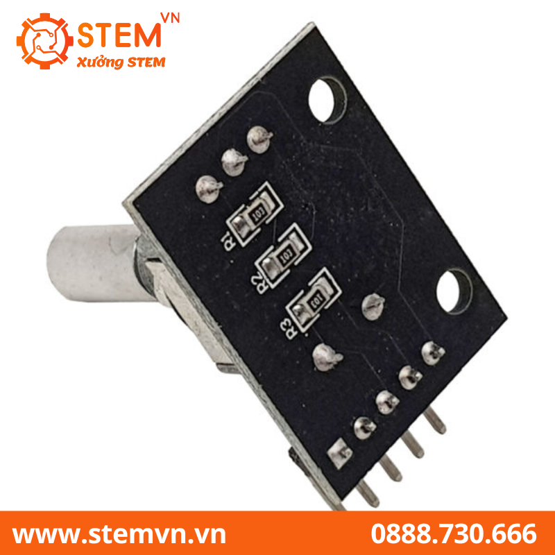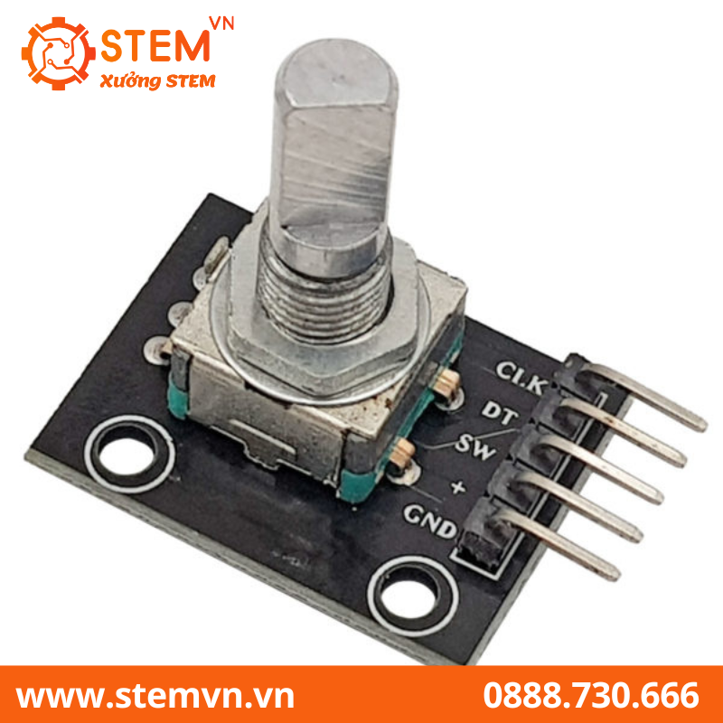 Encoder module KY-040 trông giống 1 module biến trở nhưng có ngõ ra dạng xung số. Bằng việc xoay núm vặn, ngõ ra xung của 2 kênh sẽ thay đổi với 1 độ lệch pha xác định (90 độ) giúp phân biệt được chiều xoay.