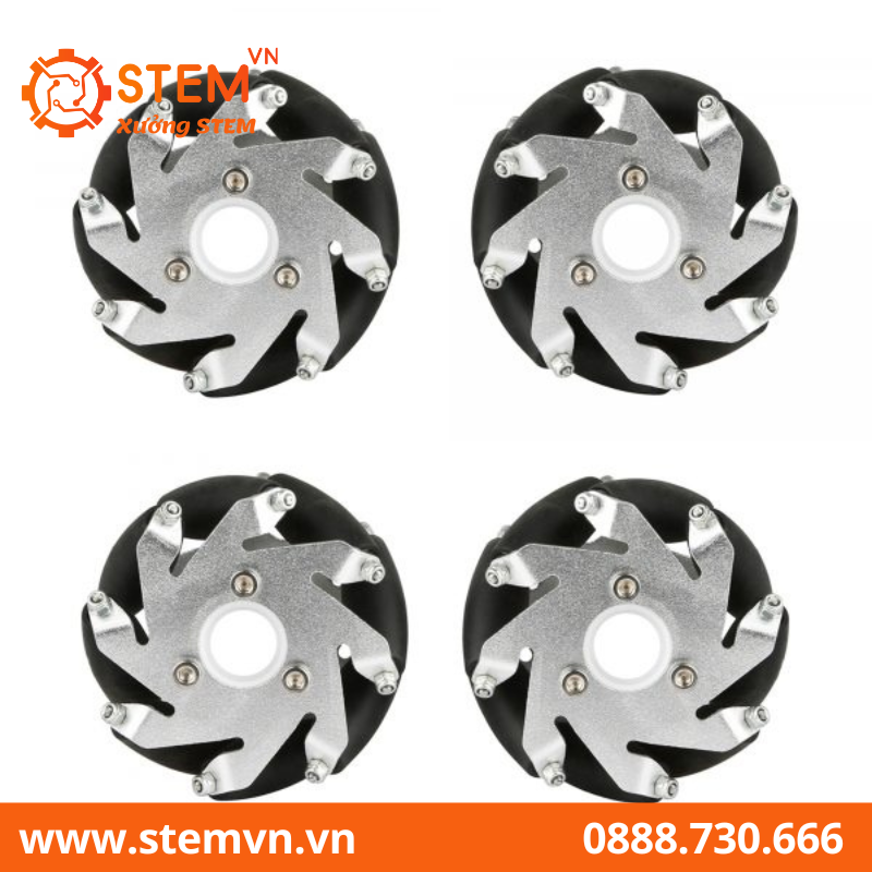 Với thiết kế đặc biệt của mình, Bánh Xe Mecanum 4 inch là giải pháp hoàn hảo cho các sản phẩm hoạt động trong không gian nhỏ hẹp, bị giới hạn diện tích hoạt động và cần tiết kiệm thời gian thực hiện hành động của mình. Bằng cách kết hợp các chuyển động của từng bánh, kết cấu sử dụng Bánh Xe Mecanum 4 inch có thể thực hiện các chuyển động cơ bản tiến – lùi, chuyển động xoay tròn dễ dàng trong một không gian rất nhỏ, đặc biệt là khả năng di chuyển ngang khi cần thiết.