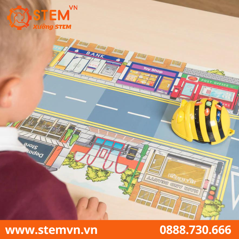 Với Bee-Bot, trẻ có thể điều chỉnh robot di chuyển chính xác trong các bước cách nhau 15cm và quay góc 90 độ mỗi lần. Ứng dụng Bee-Bot cũng giúp trẻ cải thiện kỹ năng ngôn ngữ hướng và lập trình thông qua việc xây dựng các chuỗi di chuyển phía trước, phía sau, rẽ trái và rẽ phải 90 độ.