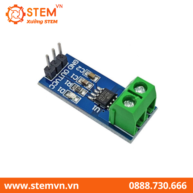 Module cảm biến dòng điện hall ACS712 5A sử dụng IC ACS712ELC-30B dựa trên hiệu ứng Hall chuyển dòng điện cần đo thành giá trị điện thế.
