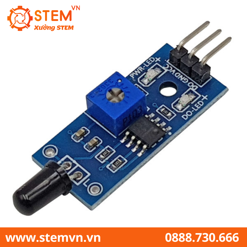 Cảm Biến Phát Hiện Lửa ngõ ra Digital thường được sử dụng trong hệ thông báo cháy. Tầm phát hiện trong khoảng 80cm, góc quét là 60 độ. Có thể phát hiện lửa tốt nhất là loại có bước sóng từ 760nm – 1100nm. Mạch được tích hợp IC LM393 so sánh để tạo mức tín hiệu. Ta có thể chỉnh độ nhạy bằng biến trở.