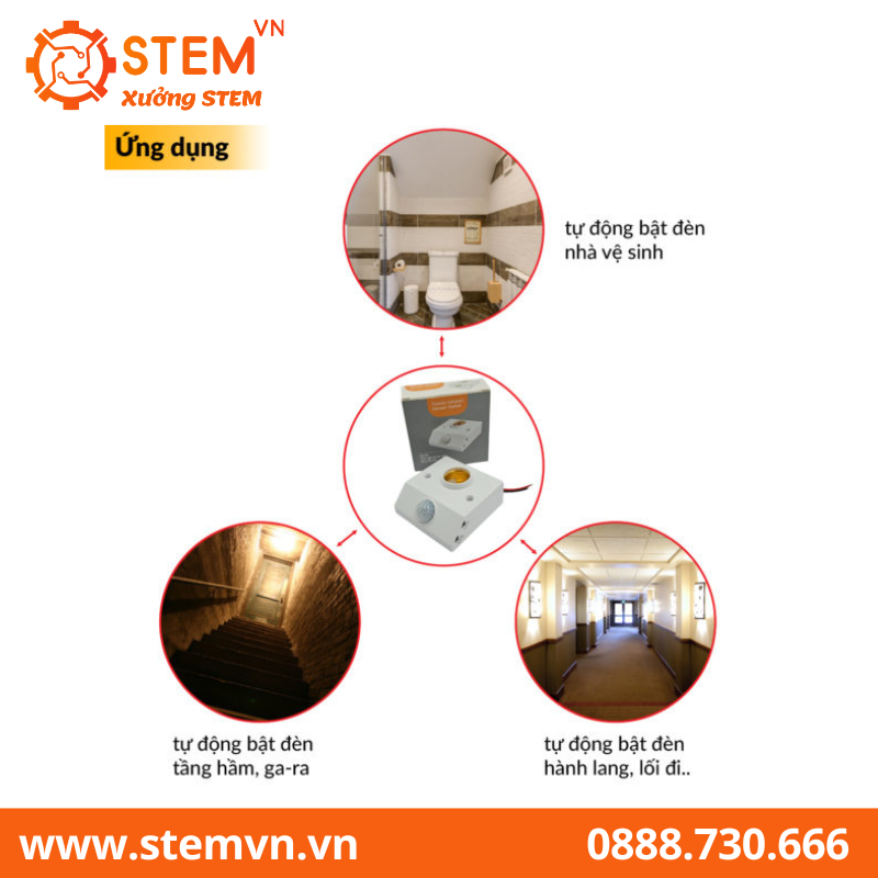 Ứng dụng bật tắt đèn: cầu thang, hành lang, ban công, nhà để xe, tầng hầm, nhà vệ sinh….