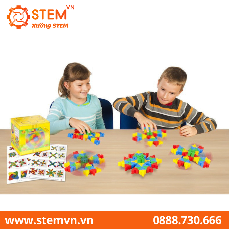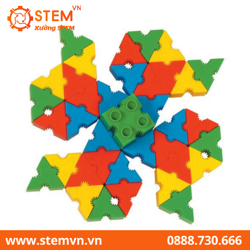 – Mô tả sản phẩm: gồm 1 hộp giấy Carton có nắp đậy tiện dụng để lưu trữ các chi tiết; 100 mảnh ghép đa chiều hình tam giác, hình vuông, các bánh răng và các thanh ghép hình trụ nhiều màu sắc; 1 cuốn sách/cuốn album hướng dẫn sử dụng đi kèm.