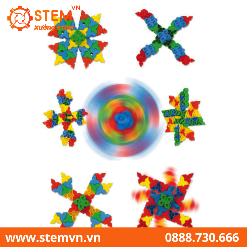 – Hướng dẫn chơi: Bé lắp ráp các mô hình con quay khác nhau theo sách hướng dẫn. Hoặc tự do sáng tạo lắp ráp những mô hình theo tưởng tượng của bé.