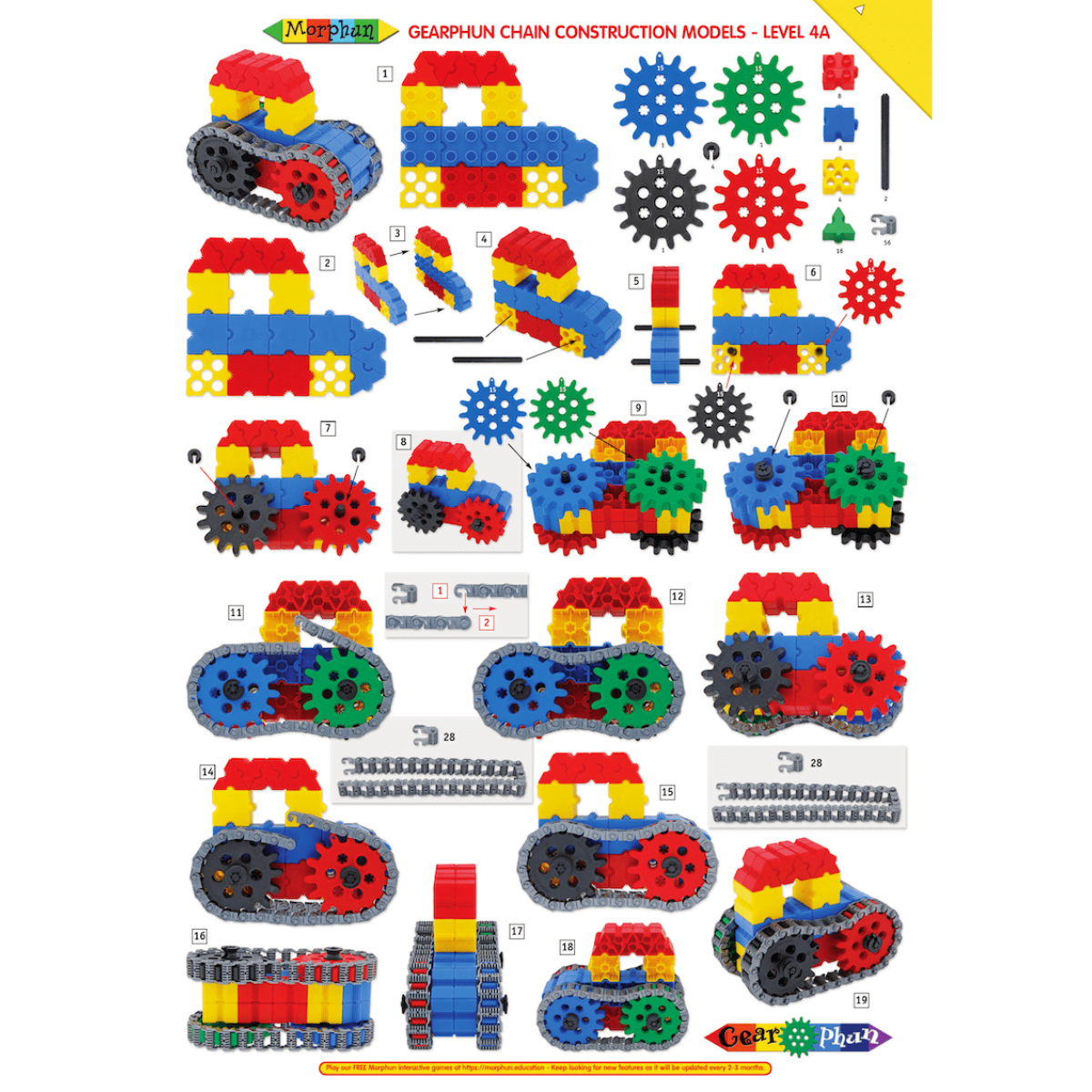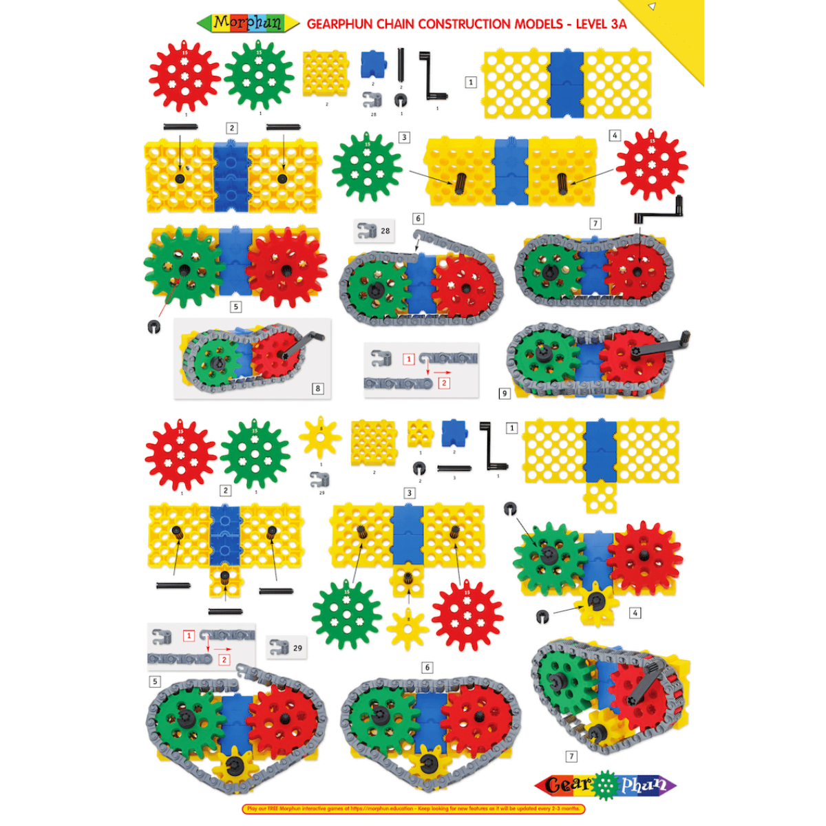 – Hướng dẫn chơi: Bé lắp ráp các mô hình chủ đề chuyển động bánh răng khác nhau theo sách hướng dẫn. Hoặc tự do sáng tạo lắp ráp những mô hình theo tưởng tượng của bé.