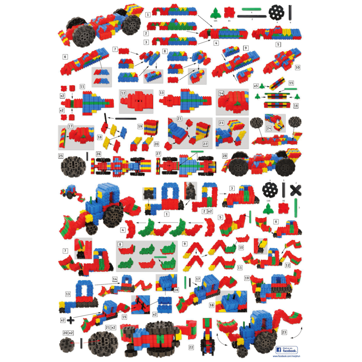 – Kích cỡ của các mảnh ghép Morphun được thiết kế bằng với kích cỡ của Duplo (Lego) và hoàn toàn tương thích với Duplo. Với thiết kế thông minh, mảnh ghép của Morphun có thể lắp ráp tạo thành các mô hình xoắn ốc, hình tròn…. Các khớp nối của Morphun dàng ẤN – TRƯỢT – GHÉP và thay đổi hướng; đa dạng thêm các bánh xe, trục và bánh răng giúp trẻ có thể thỏa sức sáng tạo không giới hạn.