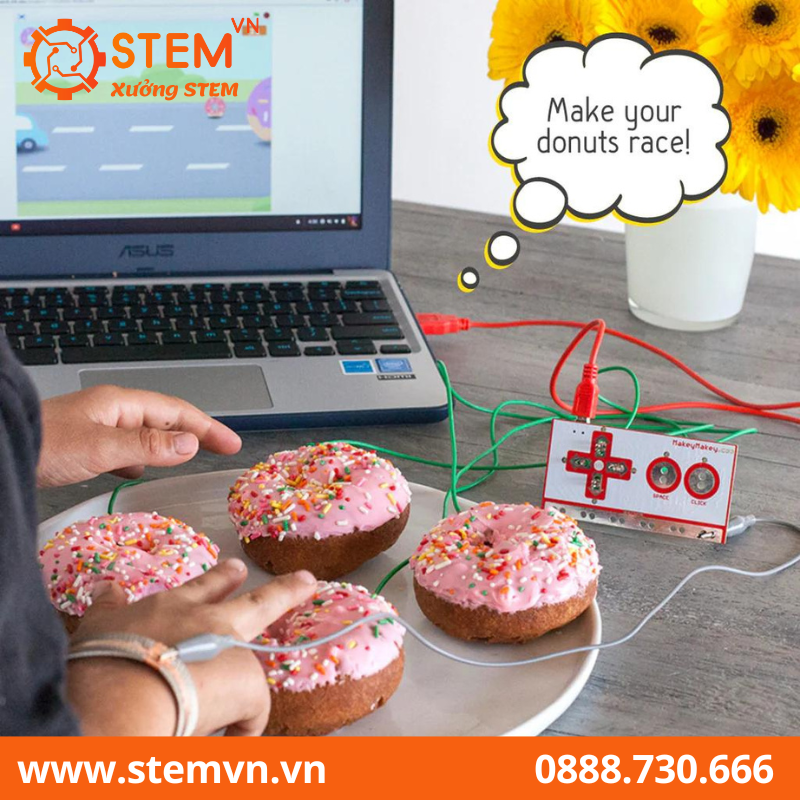Làm cho Giáo dục STEM trở nên thú vị! Bắt đầu dễ dàng với một cây đàn piano chuối. Thiết lập đầu tiên mất vài giây. Sau đó tạo bộ điều khiển trò chơi, nhạc cụ và vô số phát minh. Tiến tới các đầu vào bổ sung và ánh xạ lại nhiều phím lên đến 18 phím. Từ 8 tuổi đến vô hạn.