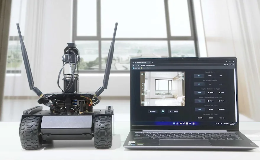 Robot AI 6 bánh 4WD dành cho bo mạch Jetson Orin Series được thiết kế cho Dòng NVIDIA Jetson Orin kết hợp khả năng di chuyển mạnh mẽ với khả năng AI tiên tiến, giúp robot phù hợp với nhiều ứng dụng đòi hỏi khả năng xử lý địa hình nâng cao và xử lý thông minh.