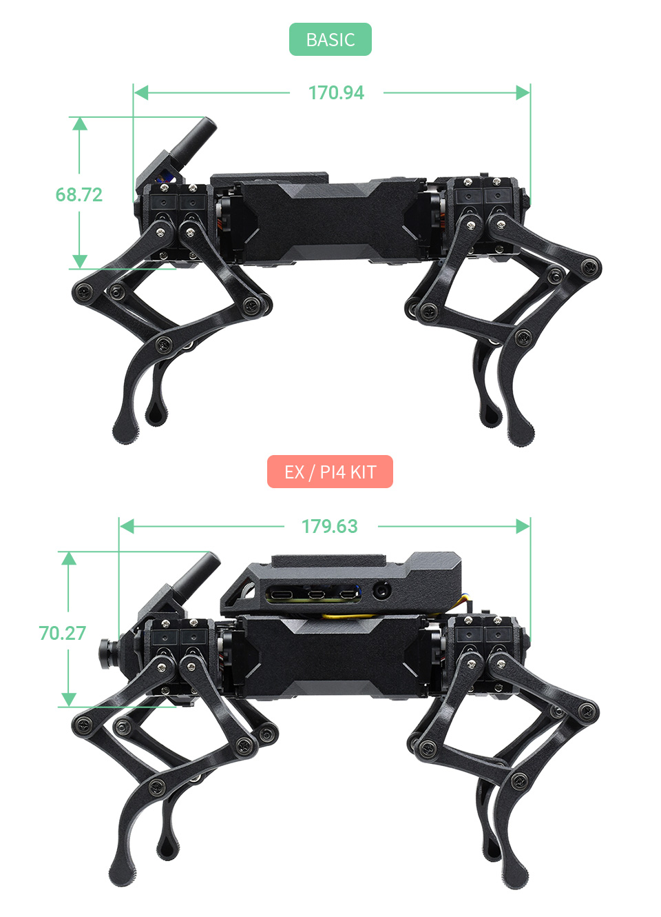 - Thiết kế chân thanh truyền đa năng, tổng thể 12-DOF, tăng mô-men xoắn hiệu dụng của servo